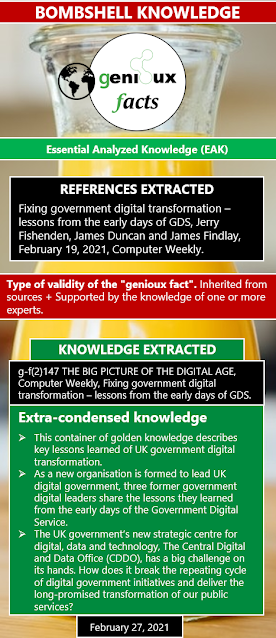 - This container of golden knowledge describes key lessons learned of UK government digital transformation.