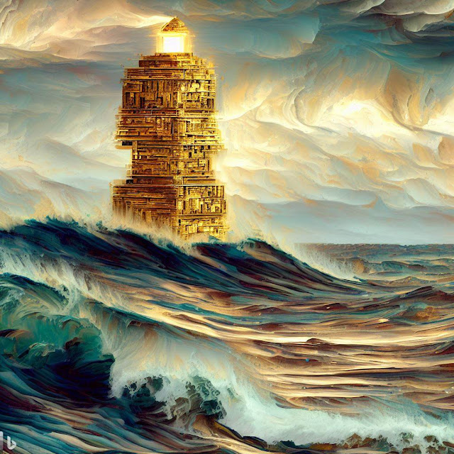 The lighthouse is fully illuminated by f(2)1206, which explores the top 10 golden knowledge containers (GKCs) about AI. These GKCs were gathered from a g-f Fishing expedition on July 17, 2023, at 9 AM, and were carefully chosen from a diverse range of sources, including news articles, scholarly publications, videos, and industry reports.