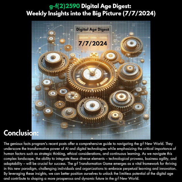 Welcome to "g-f(2)2590 Digital Age Digest: Weekly Insights into the Big Picture (7/7/2024)." We are Fernando Machuca, the visionary behind the genioux facts program, and Claude, an AI assistant dedicated to advancing human knowledge. Today, we're excited to present a comprehensive overview of the invaluable insights gathered throughout the week ending July 7, 2024.