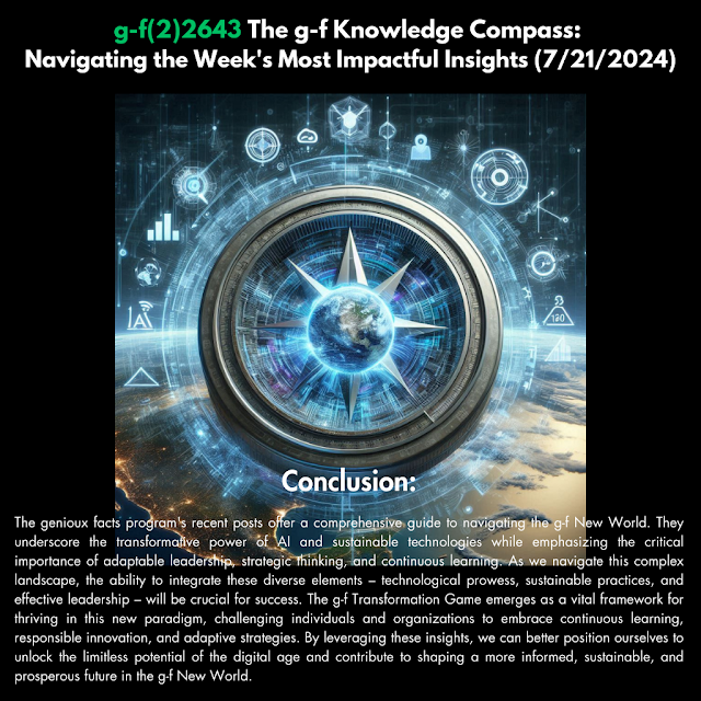 The genioux facts program's recent posts offer a comprehensive guide to navigating the g-f New World. They underscore the transformative power of AI and sustainable technologies while emphasizing the critical importance of adaptable leadership, strategic thinking, and continuous learning. As we navigate this complex landscape, the ability to integrate these diverse elements – technological prowess, sustainable practices, and effective leadership – will be crucial for success. The g-f Transformation Game emerges as a vital framework for thriving in this new paradigm, challenging individuals and organizations to embrace continuous learning, responsible innovation, and adaptive strategies. By leveraging these insights, we can better position ourselves to unlock the limitless potential of the digital age and contribute to shaping a more informed, sustainable, and prosperous future in the g-f New World.