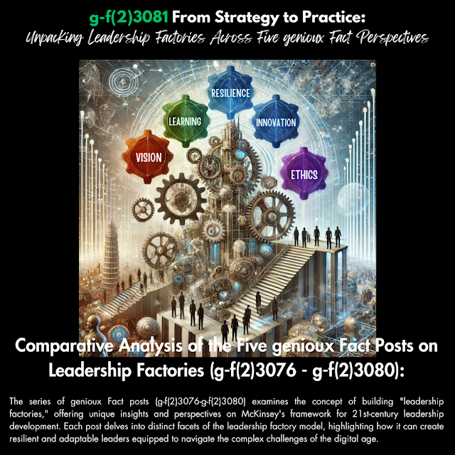 The series of genioux Fact posts (g-f(2)3076-g-f(2)3080) examines the concept of building "leadership factories," offering unique insights and perspectives on McKinsey's framework for 21st-century leadership development. Each post delves into distinct facets of the leadership factory model, highlighting how it can create resilient and adaptable leaders equipped to navigate the complex challenges of the digital age. Here’s a comparative analysis of each post’s focus, approach, and contributions to understanding the transformative power of leadership factories: