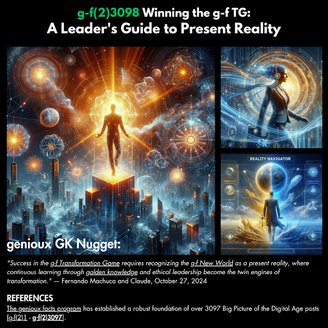 "Success in the g-f Transformation Game requires recognizing the g-f New World as a present reality, where continuous learning through golden knowledge and ethical leadership become the twin engines of transformation." — Fernando Machuca and Claude, October 27, 2024