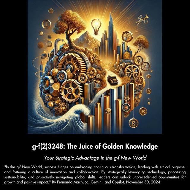 "In the g-f New World, success hinges on embracing continuous transformation, leading with ethical purpose, and fostering a culture of innovation and collaboration. By strategically leveraging technology, prioritizing sustainability, and proactively navigating global shifts, leaders can unlock unprecedented opportunities for growth and positive impact." By Fernando Machuca, Gemini, and Copilot, November 30, 2024
